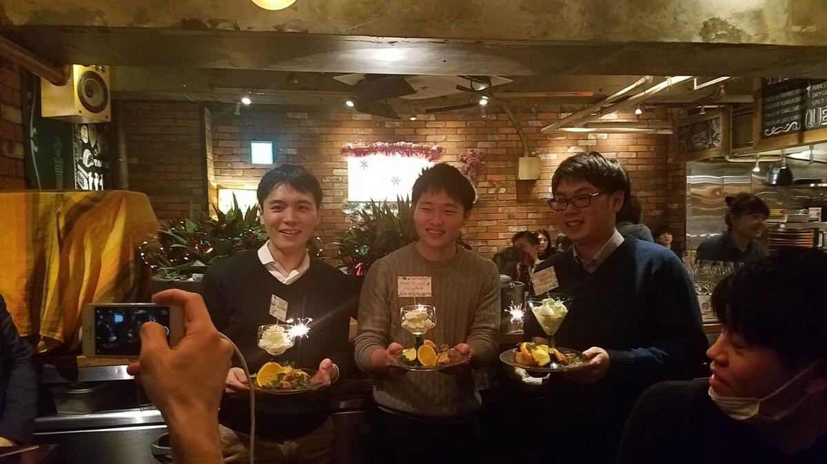 ①SRAで働き始めてから1ヶ月ぐらい経った12月末、忘年会に呼んでもらいそこで誕生日を祝っていただいた。働き始めて間もない自分が忘年会に呼んでもらえただけでなく、誕生日を祝ってもらえるなんて思ってもみなかった。